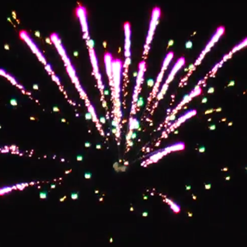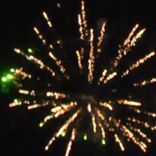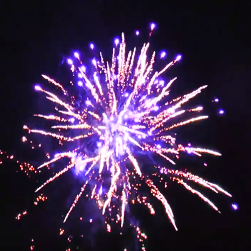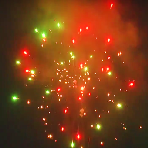 Поочередно вылетает 8 комет и разрываются на цветные пальмы, красные и зеленые пионы и трещащие кросеты.